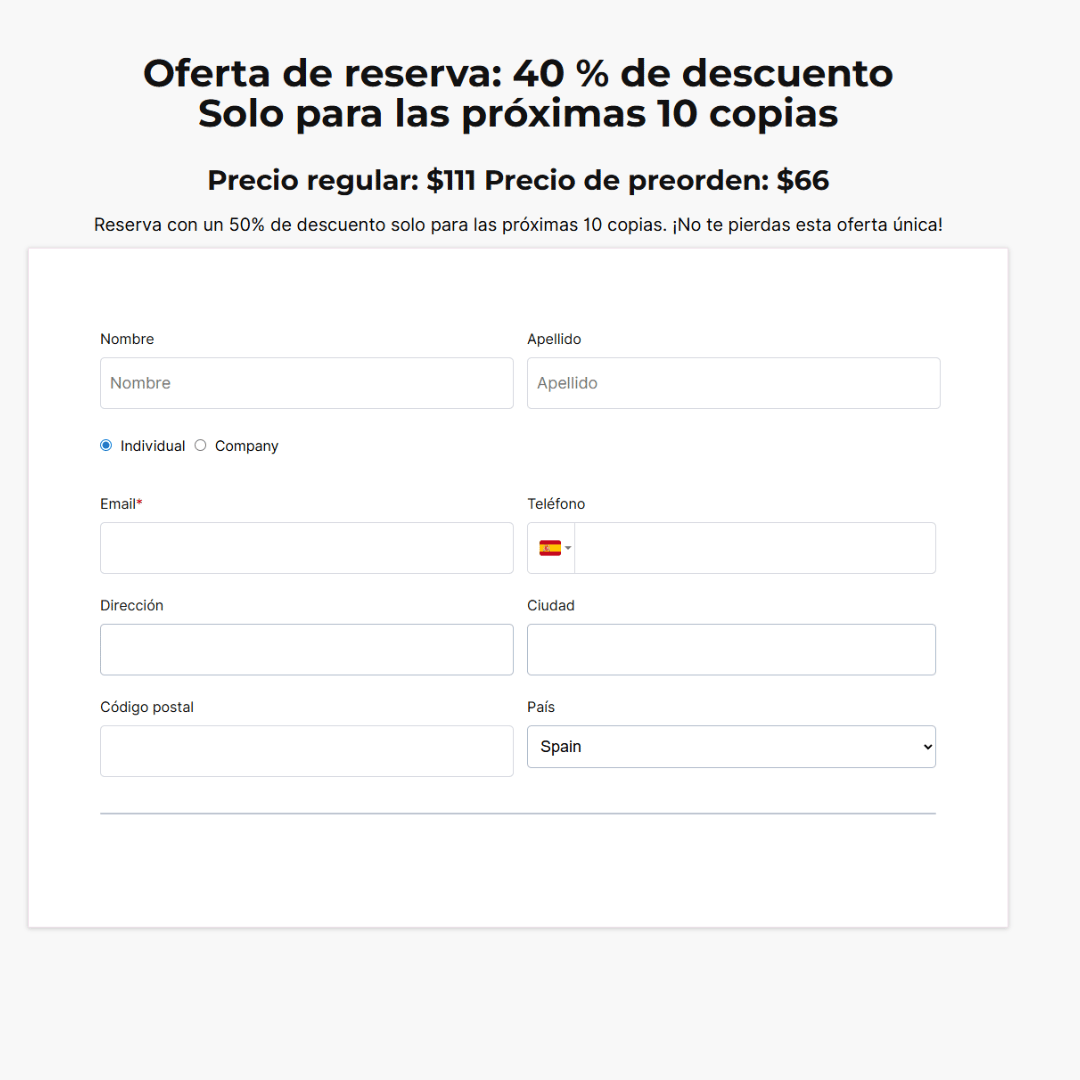 Formulario de Reserva y cobro de Ebook.